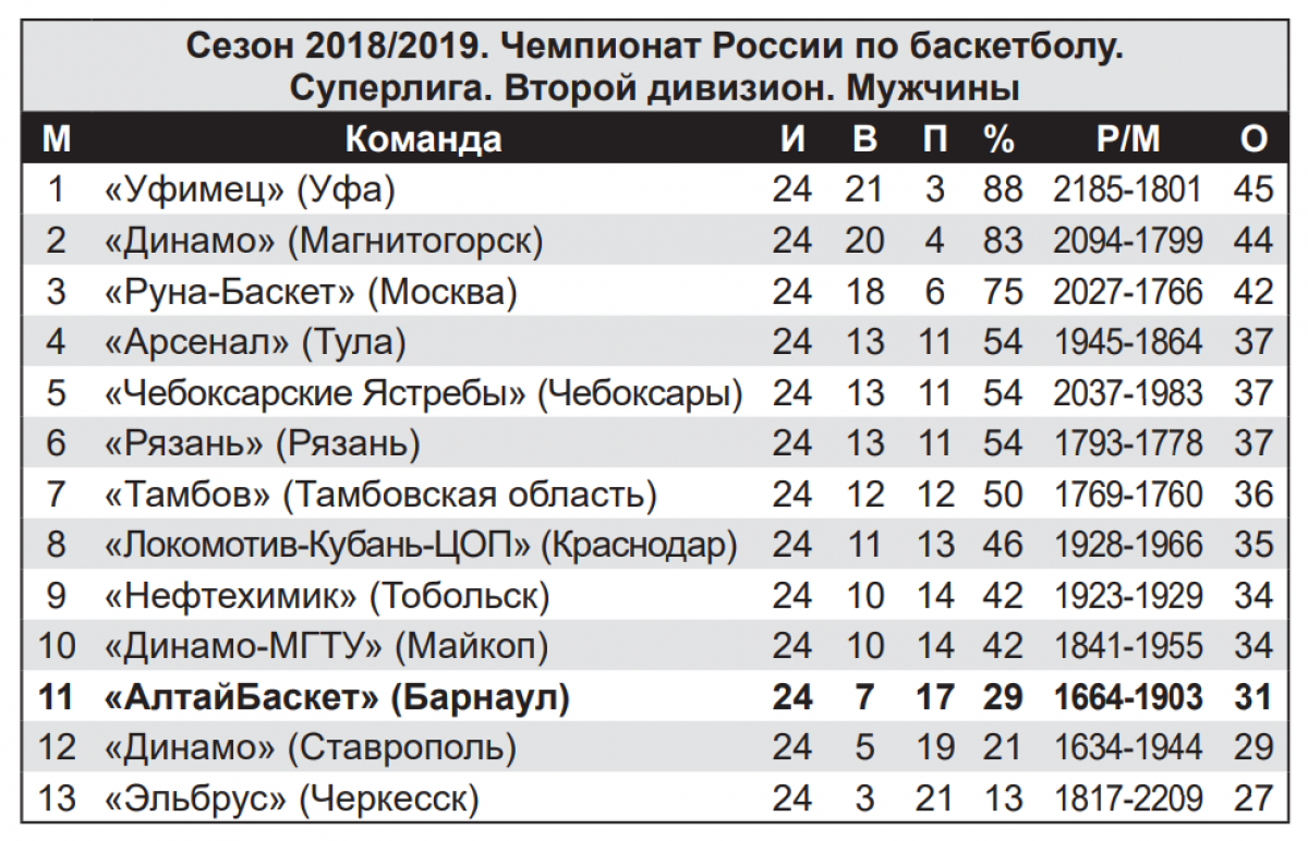 В конце января «АлтайБаскет» отправился по маршруту Тамбов - Москва. На Тамбовщине барнаульцы потерпели еще два поражения - 61:82, 69:74. При этом качество игры в исполнении нашей команды было разным. Если в первом матче гости уступили практически без шансов, то во втором смотрелись гораздо лучше и ушли на большой перерыв в роли лидера - 37:32. Наверняка барнаульцы одержали бы вторую выездную победу в чемпионате, будь в их составе капитан Клим Мускулис, который уже в Тамбове слег с ОРВИ. В его отсутствие Борис Соколовский вынужден был активнее задействовать молодого Артема Пилипенко, который в середине четвертой четверти дважды не смог вывести мяч со своей половины площадки, что привело к рывку хозяев 6−0. А исход матча решил трехочковый лидера «Тамбова» Василия Гладышева (он четыре сезона провел в составе «АлтайБаскета», являлся его капитаном, - Прим. ред.) за 50 секунд до финальной сирены. Лучшую игру в составе нашей команды в очередной раз продемонстрировал Дмитрий Злобин, который едва не дотянул до трипл-дабла - 21 очко, 9 подборов и 8 передач.