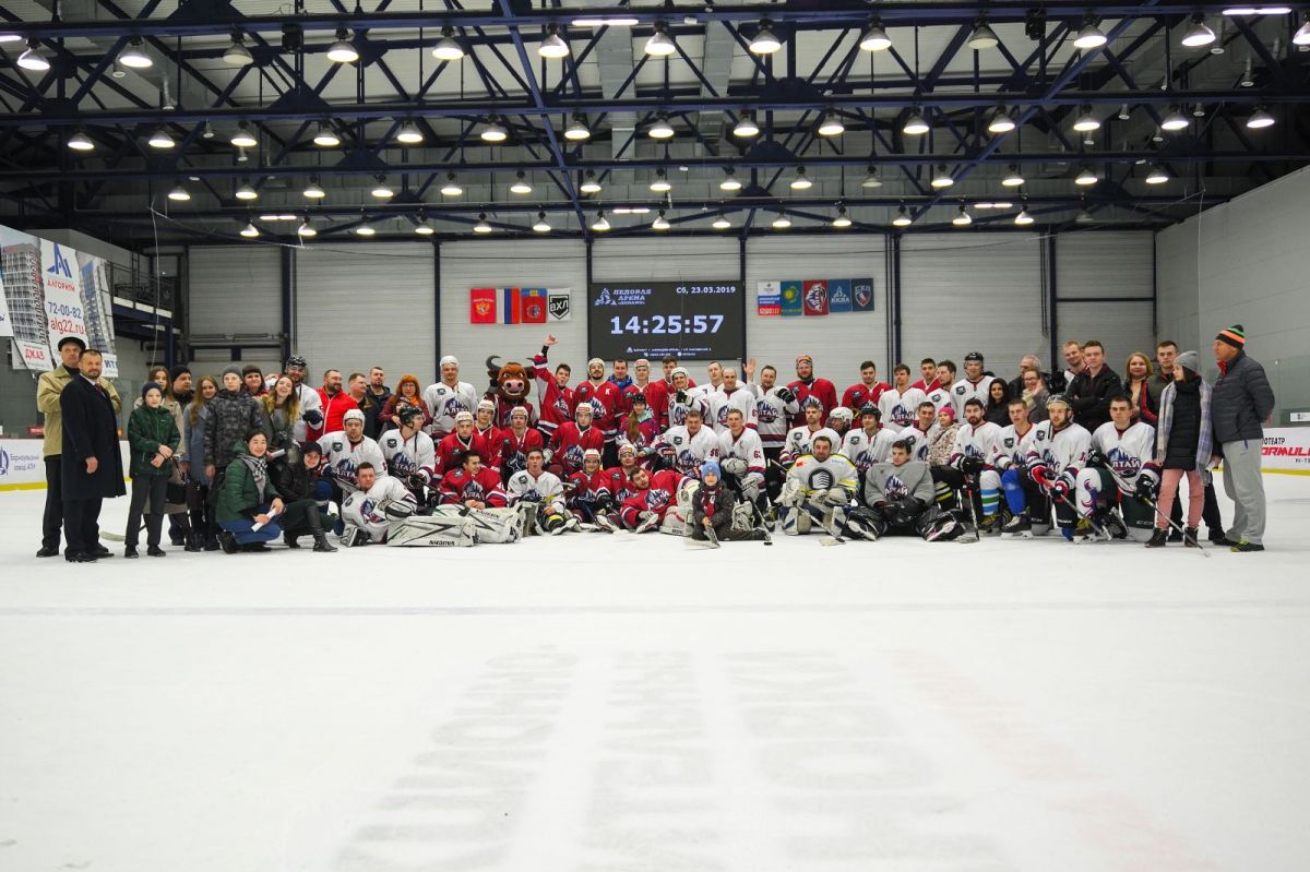 В хоккей соперники сыграли два периода. Профессионалы одержали победу над любителями со счетом 11:2. Шайбы у «Алтая» забросили: Роман Исрафилов, Андрей Локтев, Кирилл Угаров, Владимир Соболев, дублями отметились Кирилл Гай и Дмитрий Ковязин, хет-трик оформил Данил Сурков. Шайбы у команды болельщиков на счету Сергея Абрамова и Дмитрия Овсянникова.