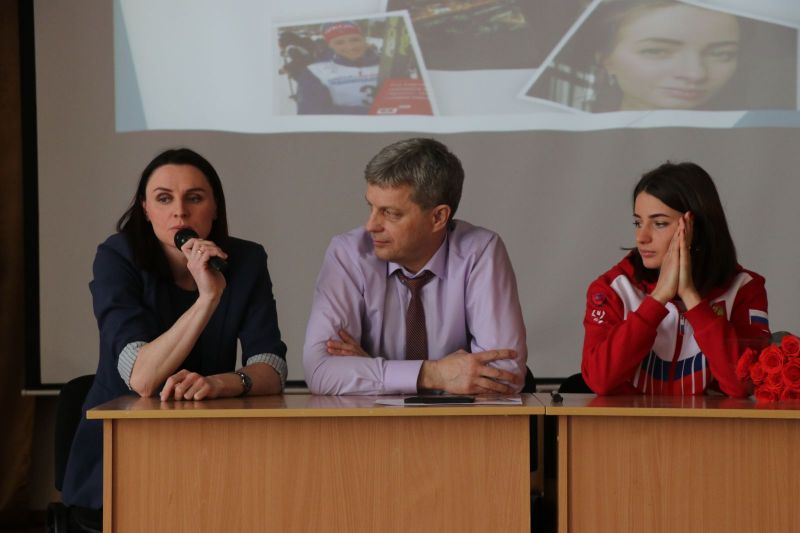 Также в общении принимали участие Евгений Трубников, директор краевого училища олимпийского резерва, и Ольга Сементина (в девичестве Кузюкова), тоже рубцовчанка, мастер спорта по лыжным гонкам, участница Олимпиады-2014, чемпионка России в классическом спринте 2013 года.