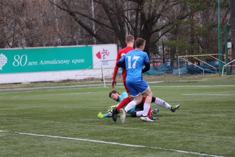 Начало второго тайма также прошло под знаком превосходства «Алтая». В одной из атака барнаульцев новосибирцы уронили в своей штрафной площади Романа Сычёва. И футболист, заявлявшийся одно время за профессиональную команду барнаульского «Динамо», сам же уверенно реализовал пенальти.