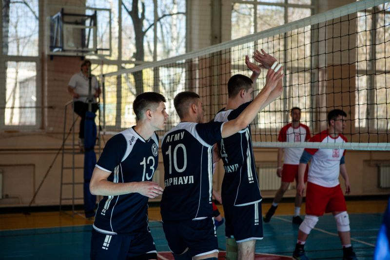 Спустя шесть лет мужская волейбольная команда АГМУ вернула себе титул чемпиона России среди медицинских и фармацевтических вузов. В 2012 и 2013 годах под руководством тренера Дуруды Владимира волейболисты АГМУ дважды становились чемпионами России, а теперь эту победную традицию продолжает молодой преподаватель кафедры физической культуры и ЗОЖ Вегнер Павел. Подгруппа для наших ребят досталась очень непростая, в ней были двукратные победители прошлых фестивалей студенты Российского национального исследовательского медицинского университета (г. Москва) и Курского медицинского университета. Тем не менее волейболистам АГМУ удалось их обыграть с одинаковым счетом 2:0. В полуфинале их ждал извечный соперник - команда Красноярского медицинского университета, которая постоянно выигрывала СФО и дважды становилась чемпионом Всероссийского фестиваля. В драматичной игре на тай-брейке алтайским волейболистам удалось дожать принципиального соперника со счетом 2:1. В финале нашим спортсменам противостояли хозяева турнира, которые готовы были поквитаться за поражение их женской команды. Игра получилась очень зрелищной, на финале присутствовал ректор РязГМУ профессор Калинин Е.Р. и представители областных Министерств здравоохранения и спорта. Финальная игра шла в режиме онлайн-трансляции. В первой партии наши ребята из-за психологического давления болельщиков уступили, а во второй смогли преодолеть давления трибун, меньше стали совершать своих ошибок и переломили ход игры в свою пользу. Третья партия также была непростой, но благодаря нескольким удачным тренерским решениям, в концовке игры наши студенты были более убедительны и результативны и выиграли счетом 2:1.
