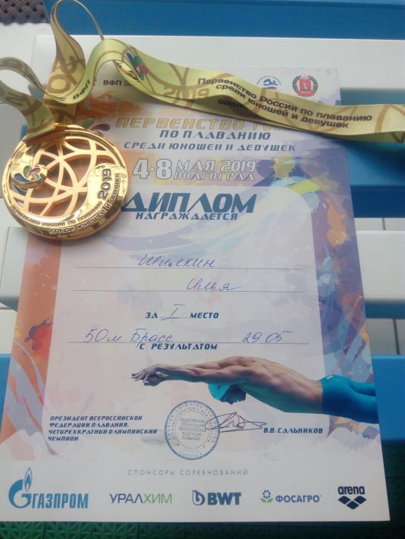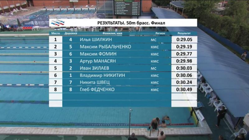 Напомним, что в активе Ильи Шилкина уже есть серебряная медаль первенства страны, завоёванная в первый день состязаний - 4 мая - на дистанции 200 метров брассом.