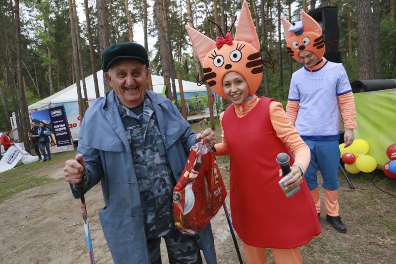 Не смог пропустить праздник и один из самых возрастных его участников - Петр Тимченко. В свои 93 года Петр Яковлевич со скандинавскими палочками прошел 5 км. Его и первых 3 000 участников праздника на «Трассе здоровья» ждал сюрприз - на втором километре дистанции сотрудники компании «Мария-Ра» вручали подарочные карты на покупки в магазинах сети.