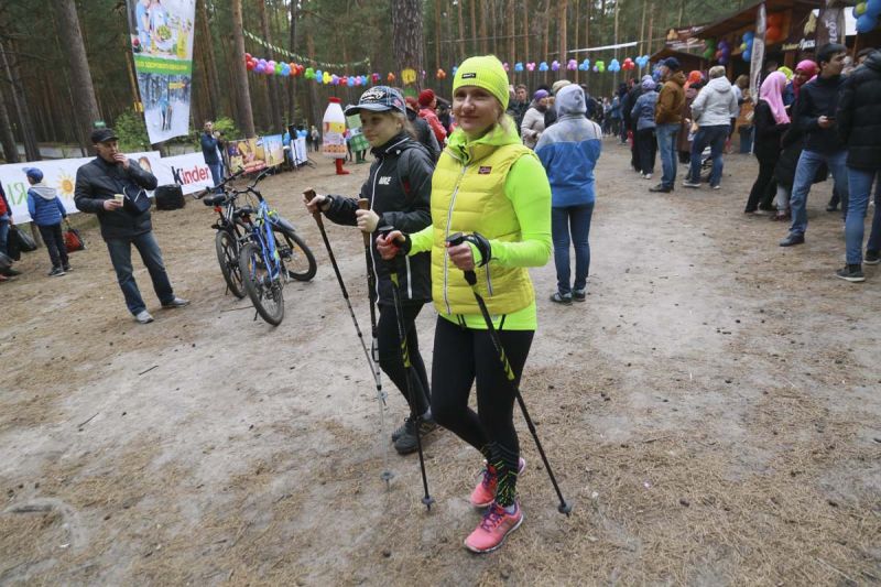 Вот и в это воскресное утро, несмотря на ветреную пасмурную погоду и пролетающие капли дождя, несколько тысяч человек, размявшись вместе с профессиональными фитнес-тренерами, отправились наматывать «километры здоровья». Традиционно на празднике не назначаются обязательные дистанции и скорость их прохождения. Каждый выбирал свой темп и расстояние. Самые маленькие участники с родителями проходили совсем немного и гордо возвращались на стартовую поляну, где их ждали веселые аниматоры с играми, конкурсами и подарками.