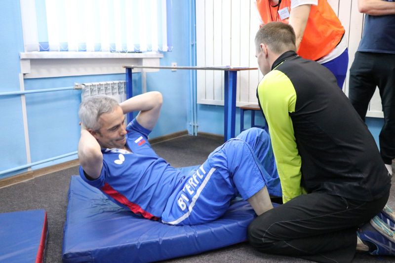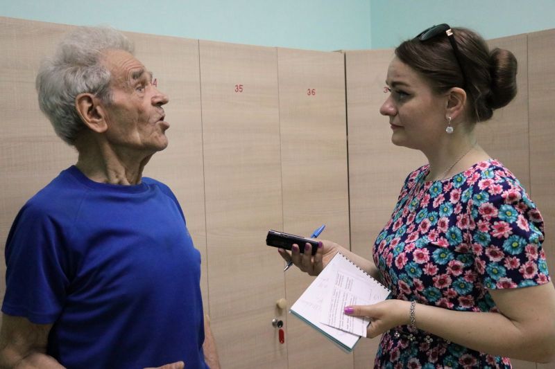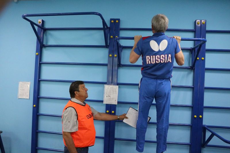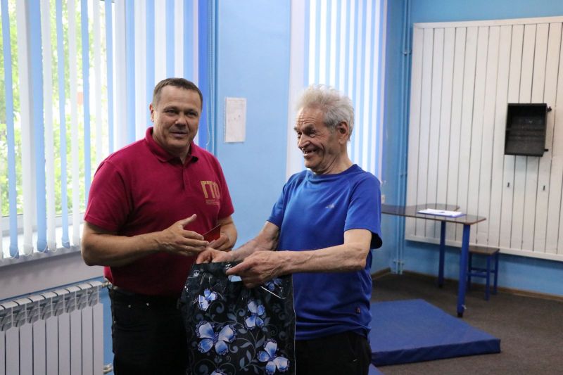 Про возрастной диапазон Андрей Михайлович все правильно заметил. В зале для сдачи нормативов готовились к тестам два десятка совсем юных физкультурников, а через пару минут состоялось наше знакомство с Юрием Михайловичем Першиным, суперветераном физкультуры и спорта. Оказалось, Юрий Михайлович приехал сдавать нормы ГТО аккурат в свой 90-й день рождения. Мощный старик! Андрей Цепенок вручил юбиляру памятный приз, а участники и судьи приветствовали его аплодисментами. Пожалуй, более красноречивый пример пользы активного образа жизни трудно придумать.