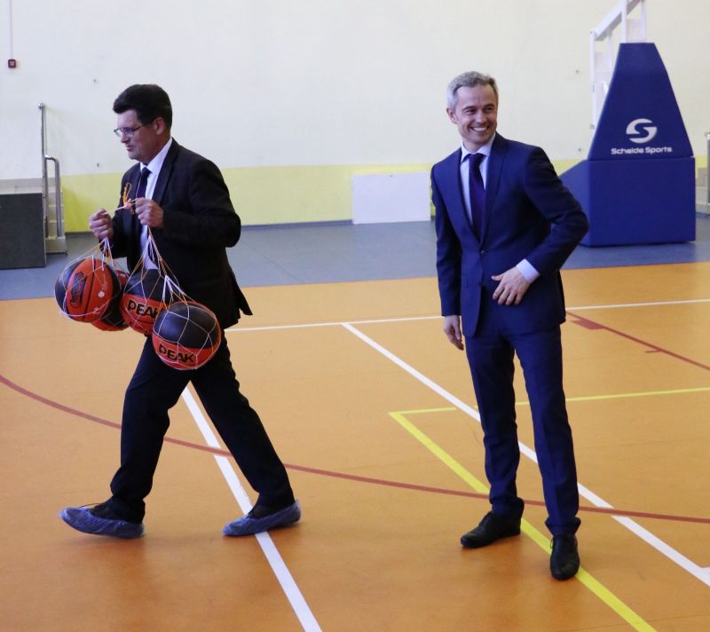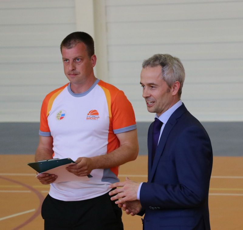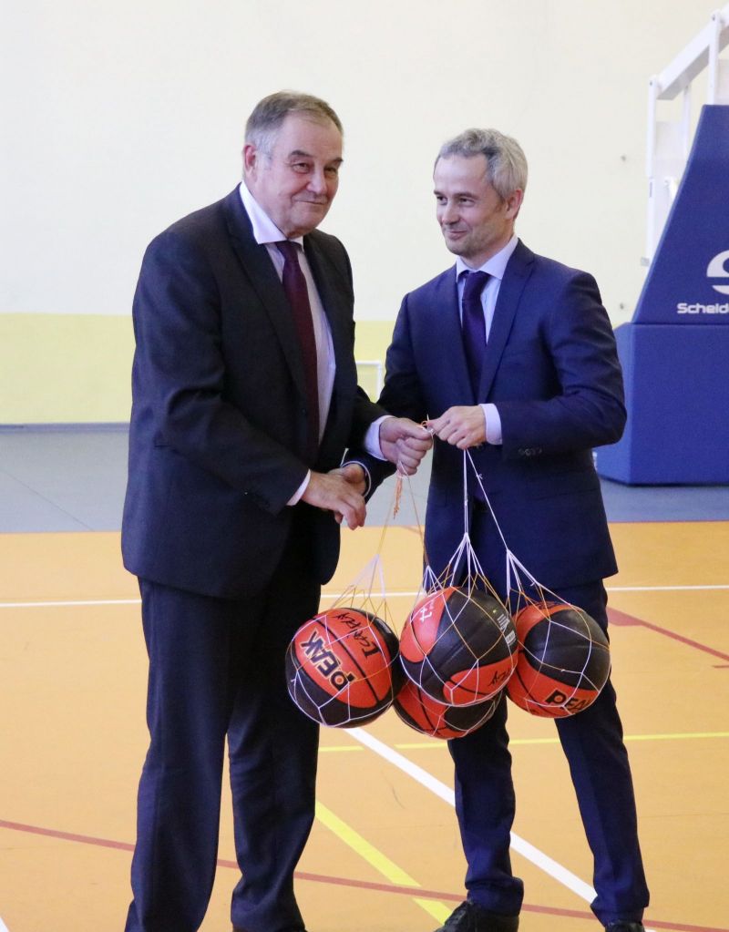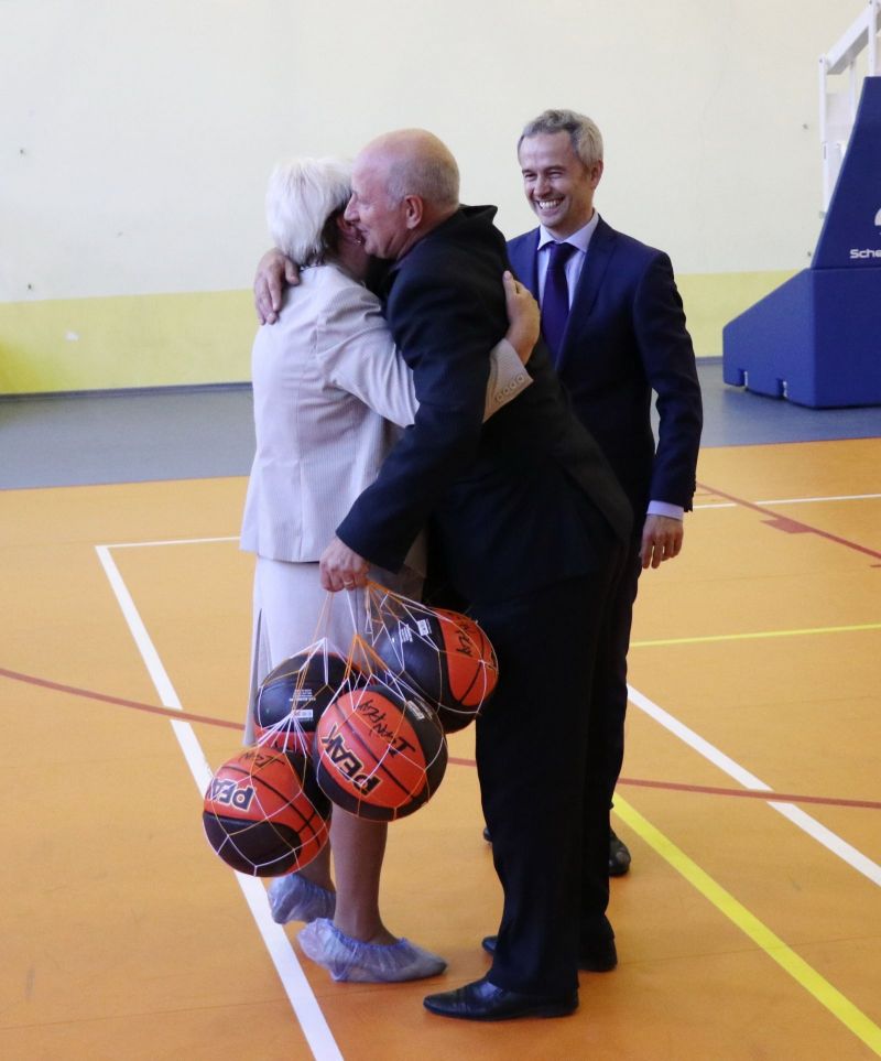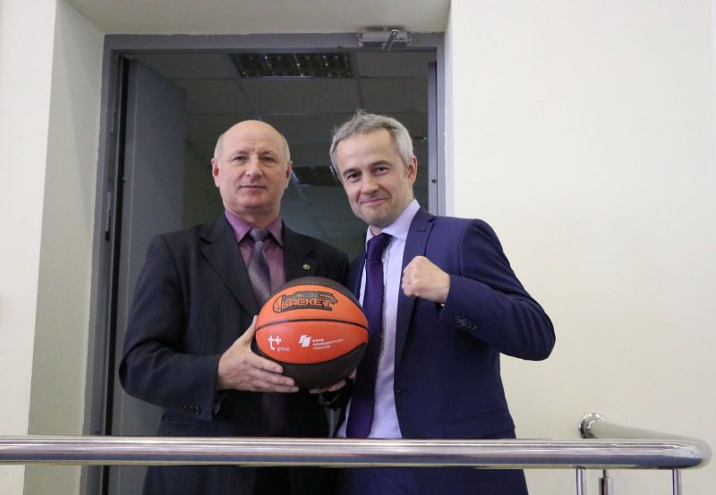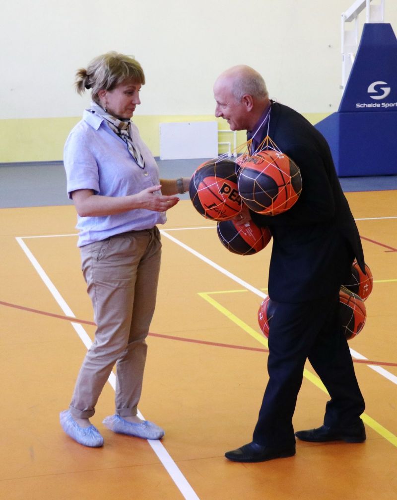 Сегодня в зале Алтайского училища олимпийского резерва министр спорта края Алексей Перфильев передал баскетбольные мячи руководителям учебных заведений Октябрьского и Железнодорожного районов Барнаула - участникам ШБЛ «КЭС-БАСКЕТ».