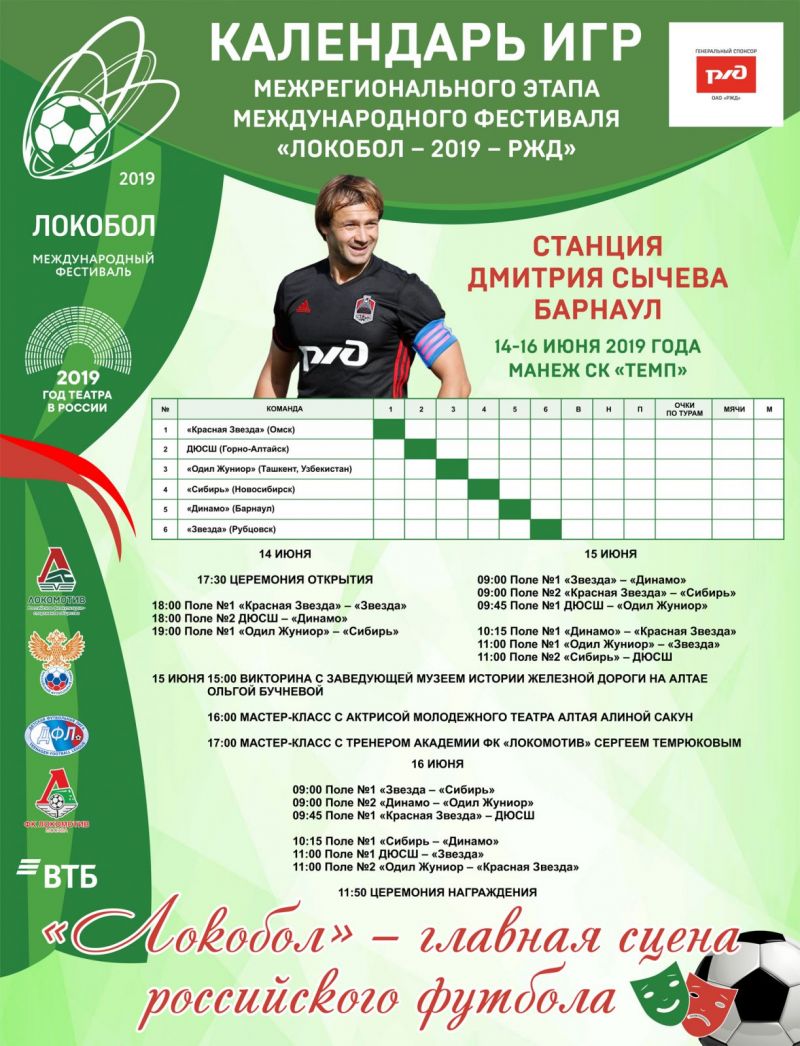 14−16 июня. Барнаул. С/к «Темп». Межрегиональный этап ХIII международного футбольного фестиваля «Локобол-2019-РЖД» среди мальчиков 2008—2010 годов рождения