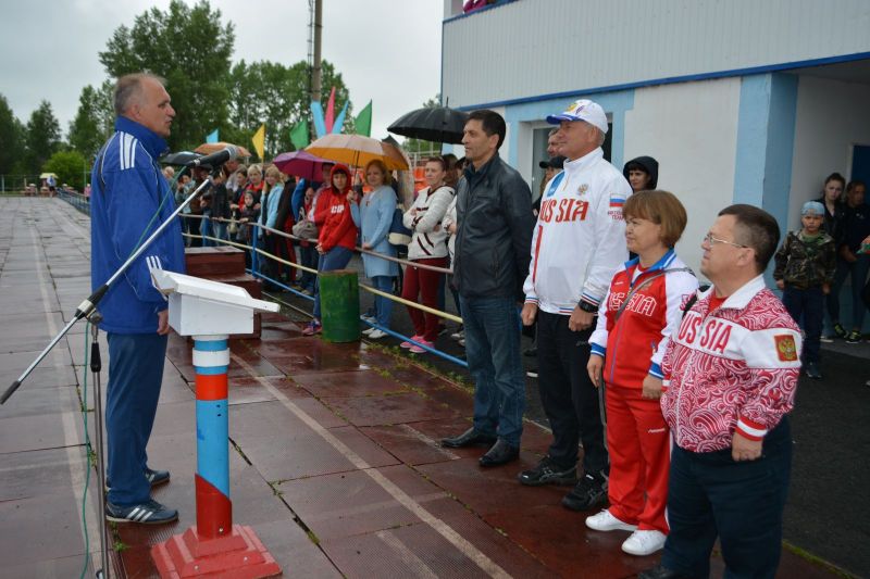 В спортивном празднике приняли участие около 400 спортсменов. Дождь не испугал ни участников состязаний, ни многочисленных зрителей, собравшихся на стадионе.