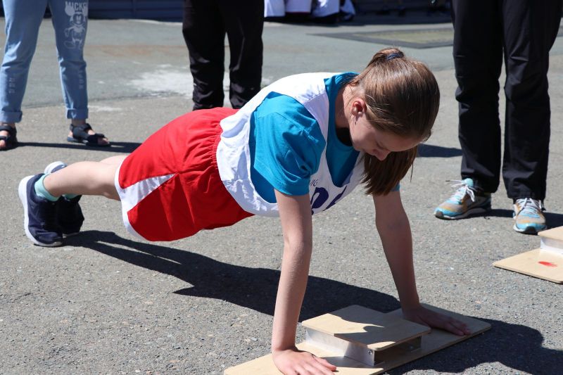 Подростки выполняли различные нормативы комплекса ГТО. Программа состязаний включала стрельбу из пневматической винтовки, подтягивание (юноши), отжимание (девушки), упражнение на гибкость, прыжки в длину с места, бег на 60 метров, плавание, метание мяча и кросс.