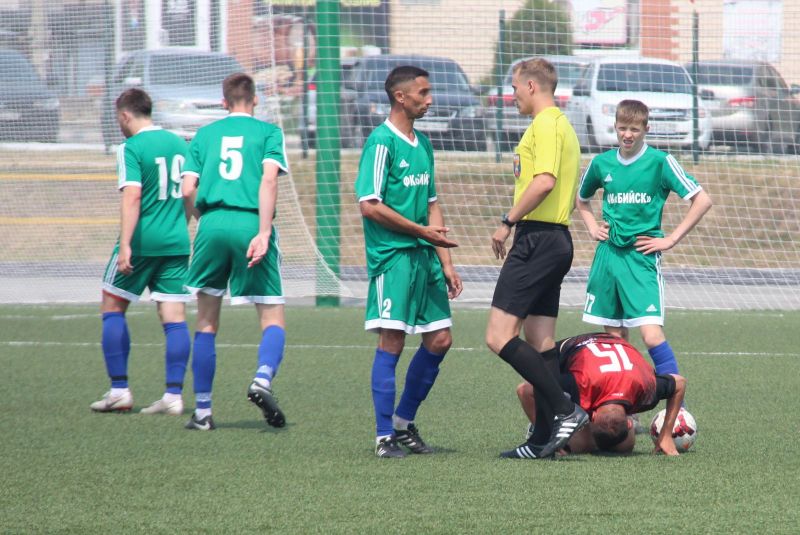 В финальном матче футбольного турнира IX летней олимпиады городов в Новоалтайске сошлись сборные Бийска и Алейска.