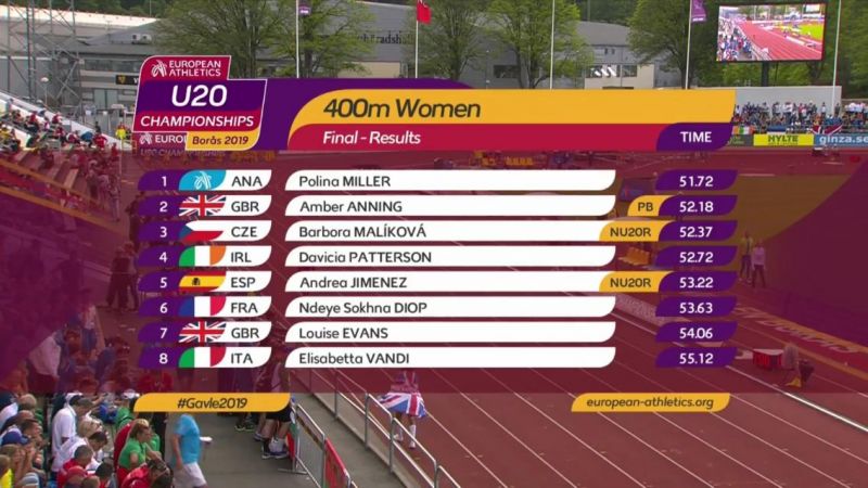 Полина Миллер выиграла первенство Европы среди спортсменок до 20 лет в беге на 400 метров
