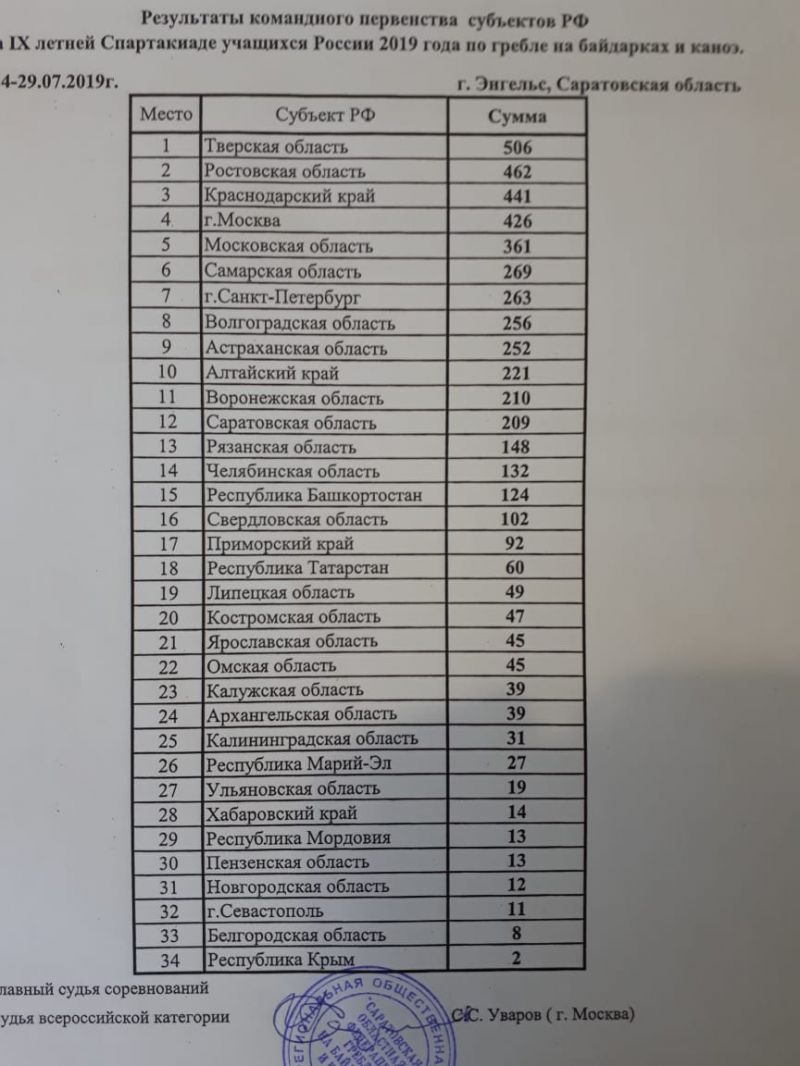 В городе Энгельсе Саратовской области 28 июля завершились финальные соревнования IX летней Спартакиады учащихся России среди гребцов до 17 лет (2003−2005 годов рождения). Команда Алтайского края, сформированная из спортсменов краевой СШОР имени Константина Костенко, заняла в командном зачёте десятое место из 34-х.