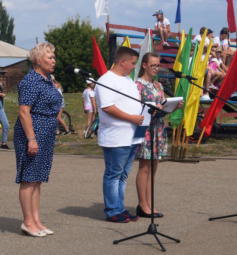 На церемонии открытия олимпиады помимо руководства района выступила помощник депутата Государственной Думы Натальи Кушиновой Ирина Веряскина, которая преподнесла подарок - газонокосилку для выравнивания травяного покрова на стадионе.