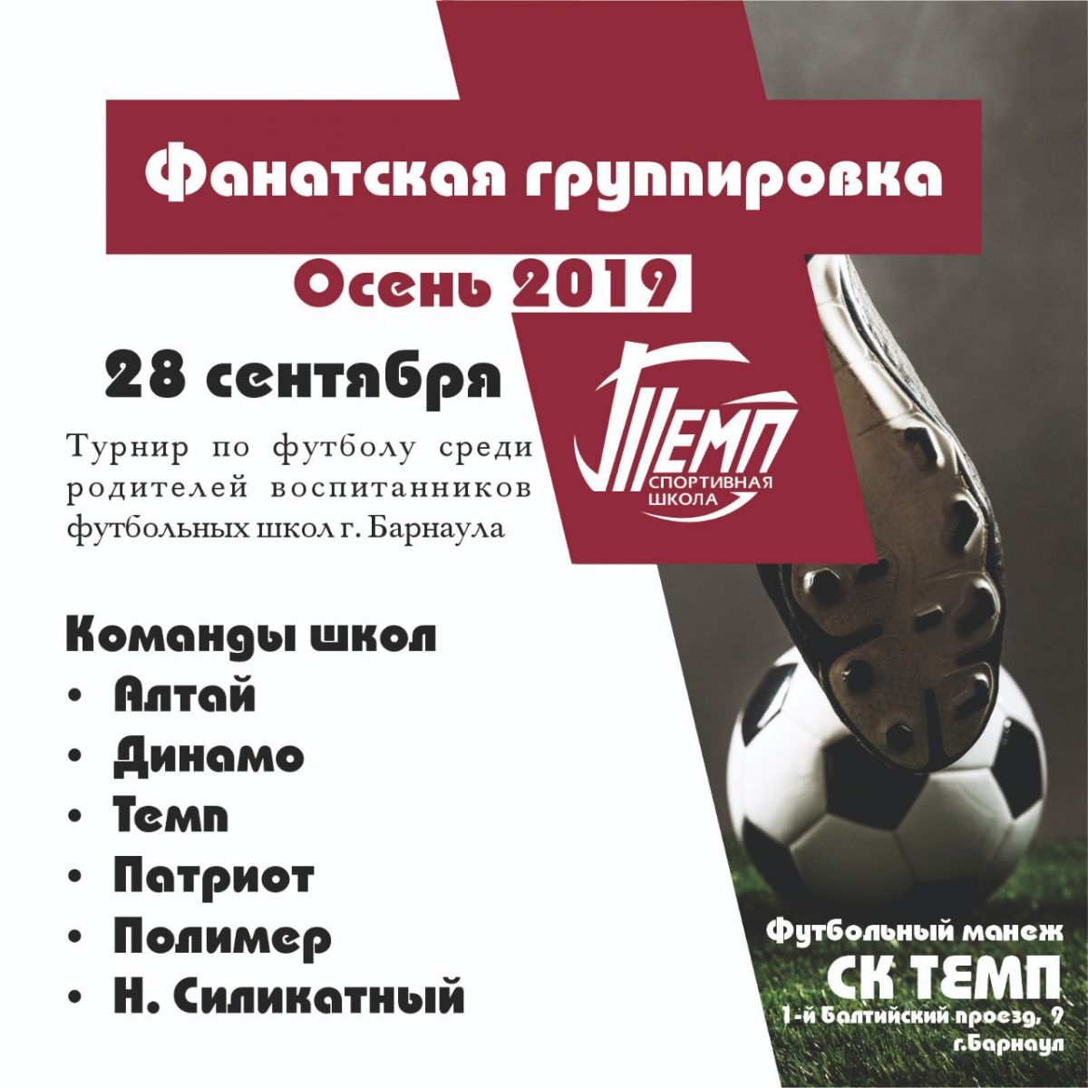 Спортивная школа «Темп» проведёт турнир среди родителей воспитанников футбольных школ Барнаула