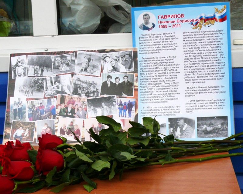 ГАВРИЛОВ Николай Борисович - тренер Алтайского училища олимпийского резерва по биатлону. В 1980-е годы он вместе с Алексеем Паршиковым подготовил первых мастеров спорта по биатлону в Алтайском крае среди женщин Галину Верещагину и Ольгу Чудову (Кузнецову) - победительниц чемпионата СССР в эстафетной гонке. За долгие годы тренерской работы в биатлоне Николай Гаврилович воспитал множество сильных спортсменов.