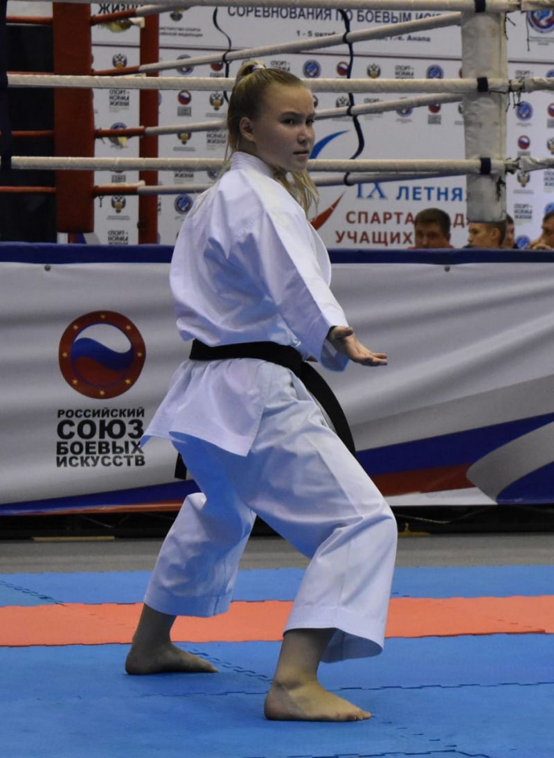 Вторую медаль сборной Алтайского края по всестилевому каратэ принесла Дарья Копылова из клуба «Боец» барнаульской спортшколы «Рубин». Воспитанница тренера Вадима Томаса завоевала серебро в разделе «ката».