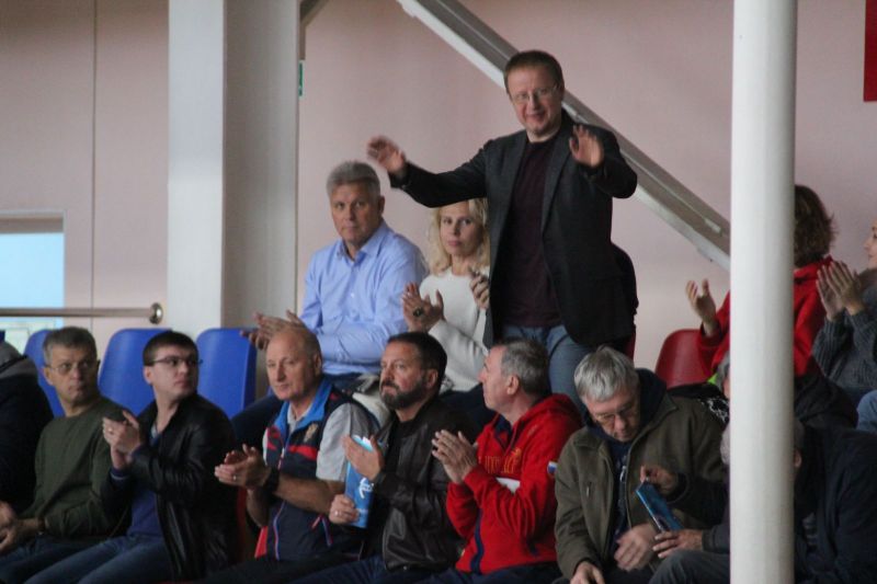 В начале матча болельщики поприветствовали на трибуне спорткомплекса «Победа» губернатора Алтайского края Виктора Томенко.