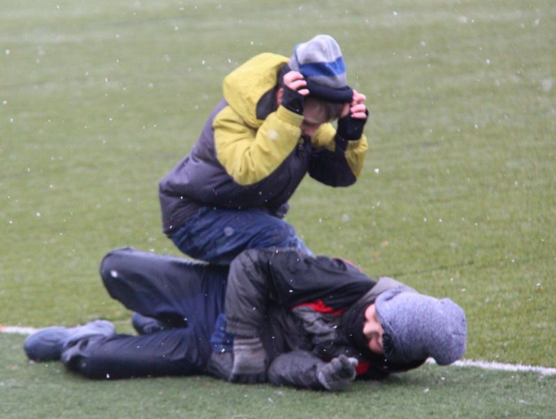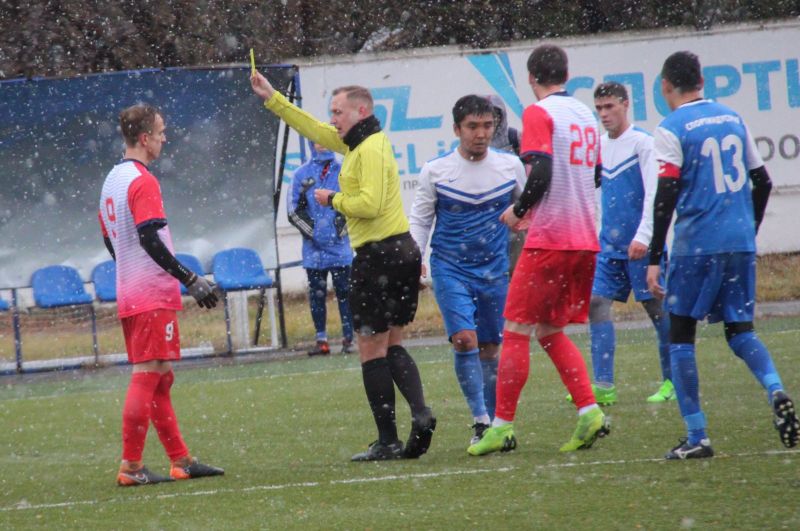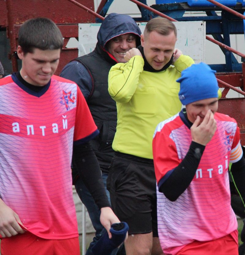 Начало встречи осталось за гостевым коллективом. Его футболисты уверенней контролировали мяч и быстро вышли вперед: Максим Суразаков с дальнего расстояния классно положил мяч в левую «девятку» - 0:1. В такую погоду число собравшихся зрителей можно было пересчитать по пальцам, однако они активно поддерживали барнаульцев и те вскоре отыгрались: красивую комбинацию точным ударом завершил Николай Селянинов - 1:1. «Алтай» заметно стал прибавлять и плавно забрал инициативу в матче. У ворот горно-алтайцев регулярно возникали острые эпизоды, и в концовке первого тайма мяч вполне ожидаемо вновь оказался в сетке: тот же Селянинов вышел один на один и хладнокровно переиграл голкипера - 2:1. До перерыва хозяева остались в меньшинстве: Андрей Казанцев грубо сыграл в отборе и получил вторую желтую карточку.