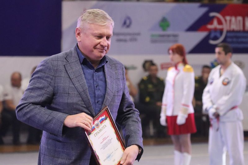 - Мы открываем финальные бои седьмого этапа Кубка Вооруженных Сил России по армейскому рукопашному бою на призы нашего прославленного земляка - Героя Российской Федерации Владимира Анатольевича Шаманова. Этот турнир занял достойное место в линейке соревнований. Владимир Анатольевич поставил высокую планку и для организаторов, и для участников. Победить здесь - большая честь! Неслучайно Министерство обороны признало этот турнир по армейскому рукопашному бою лучшим, проводимым в Вооруженных Силах нашей страны.