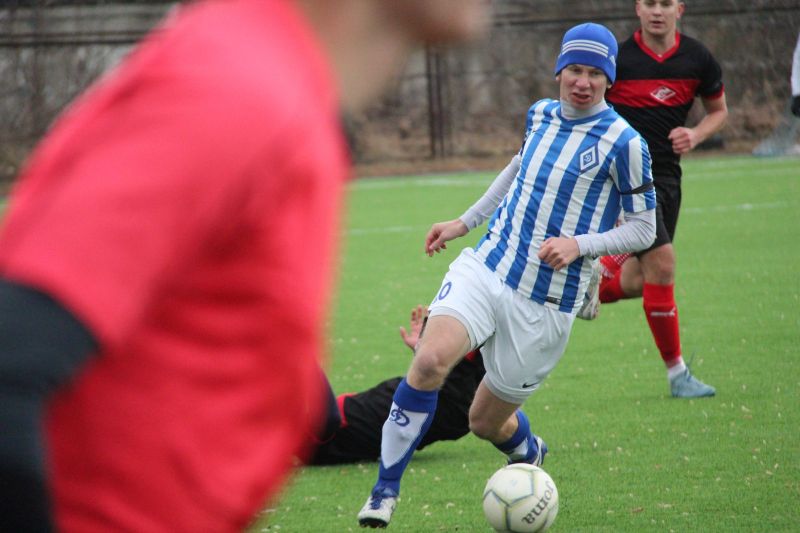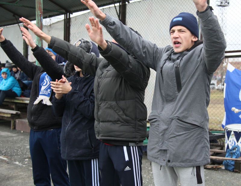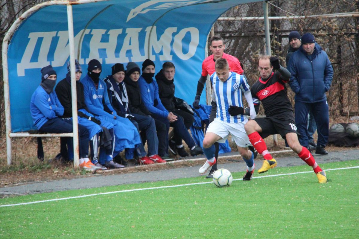 Начало игры прошло при тотальном преимуществе «Динамо», в составе которого вышли практически все молодые футболисты профессиональной команды под предводительством опытного Владимира Завьялова. В итоге к середине тайма динамовцы повели 2:0. На 18-й минуте забил гол Михаил Осипов, а на 27-й - Игорь Абрамов. Но после того, как с подачи углового Сергей Яковлев на 35-й минуте ударом головой один гол отыграл, игра выровнялась. А затем в одном из эпизодов после классного удара Олега Кристи ворота динамовцев спас голкипер Егор Сафронов.