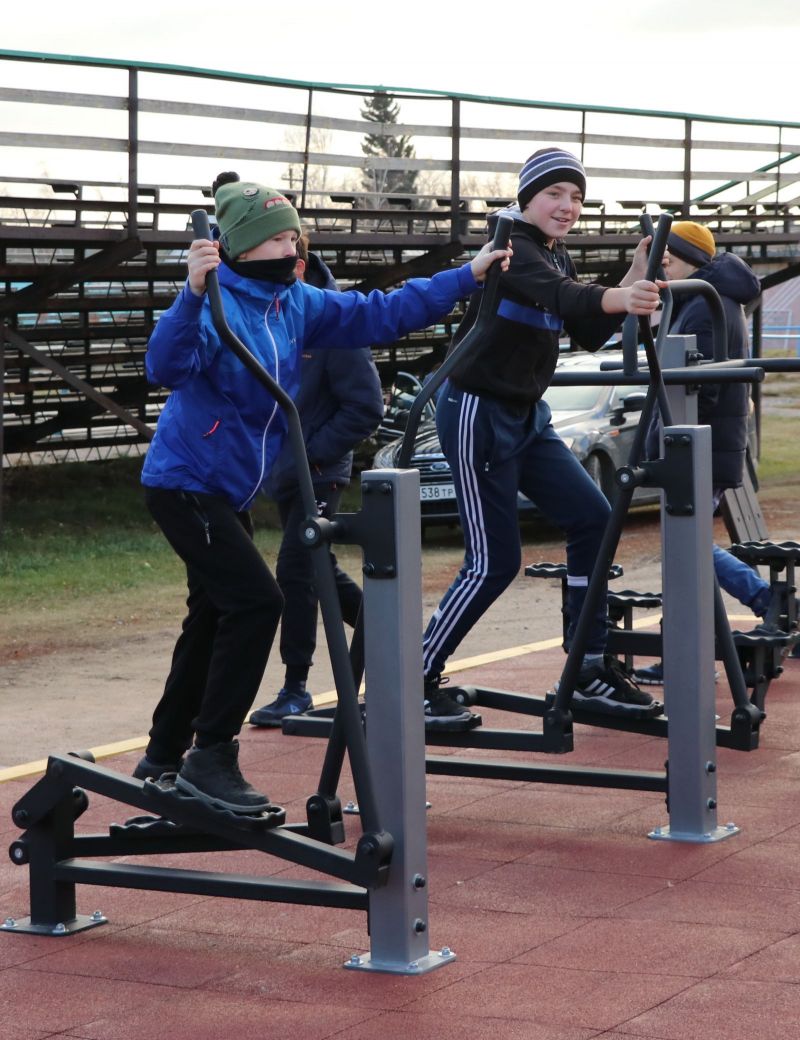На ребрихинском стадионе «Старт» новая спортплощадка с тренажёрами стоимостью 3 миллиона рублей заняла место между хоккейной коробкой и мини-футбольным полем. Планируется, что в течение пяти лет подобные площадки будут открыты во всех сельских районах края. Оборудование поступает в регион в рамках реализации федерального проекта «Спорт — норма жизни» национального проекта «Демография». Предполагается, что в нынешнем году площадки привезут в первые 25 районов. Кстати, эти муниципалитеты выбраны на основании рейтинга краевого министерства спорта, в котором учитываются результаты внедрения комплекса ГТО.