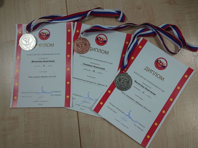 Филатова Анастасия в дисциплине Таолу - 2 место в виде Наньцюань и 2 - место в виде Наньгунь;