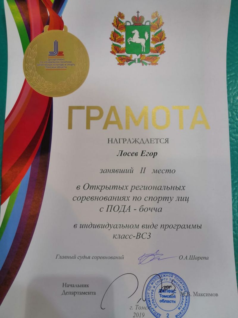 Успешно выступил в Томске наш земляк Егор Лосев. Он стал обладателем первого места в парном выступлении в классе ВС3 и занял второе место в индивидуальной программе класса ВС3. Также на счету Егора - серебро в командном зачете.