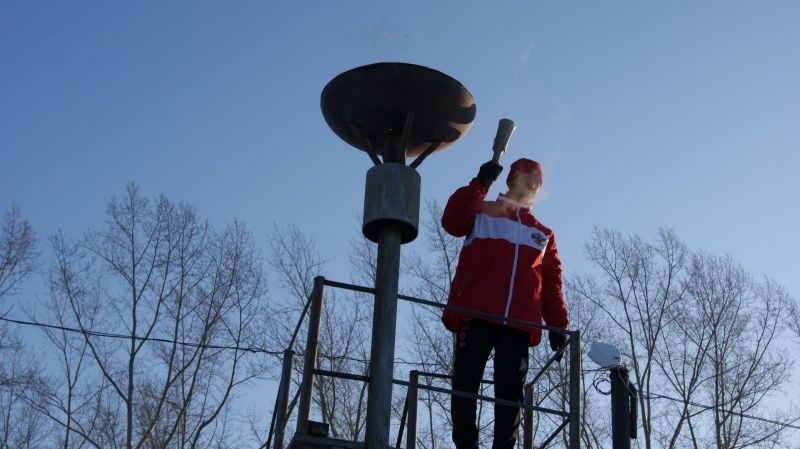 Вскоре на стадионе появился факел! Евгений Асанов - методист по спорту Енисейского сельсовета, чемпион Алтайского края по полиатлону и футболу, - зажег олимпийский огонь, после чего заиграл гимн России.