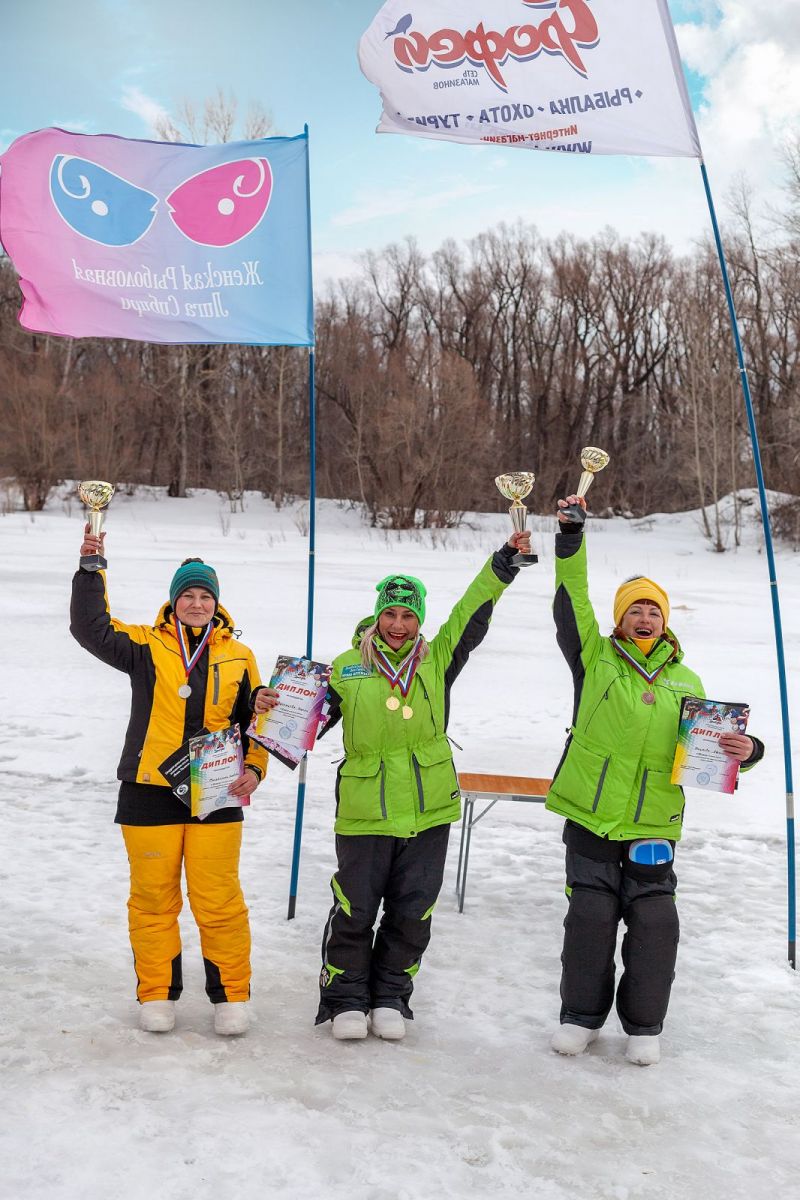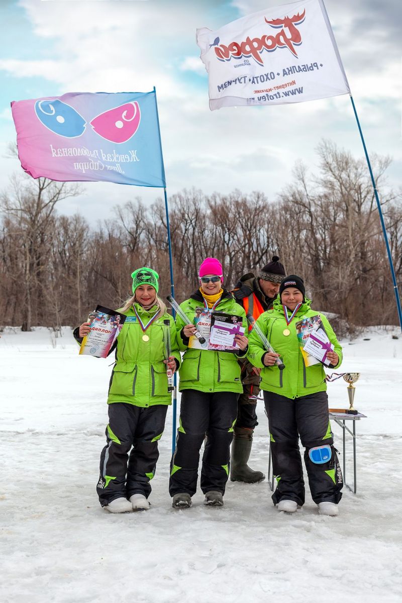 В командном зачёте первенствовало трио «Нимфы» (Наталья Лаас, Ирина Артемьева, Людмила Воробьёва), на втором месте команда «На крючке» (Валентина Иванова, Дарья Гребёнкина, Татьяна Лютаева), на третьем - «Стрекоза» (Светлана Отмахова, Валентина Кухленко, Татьяна Соломатова). Примечательно, что команда «Стрекоза» полностью состоит из слушательниц последнего осеннего набора курсов Женской рыболовной лиги «Основы зимней женской рыбалки», в рыболовном спорте они новички.