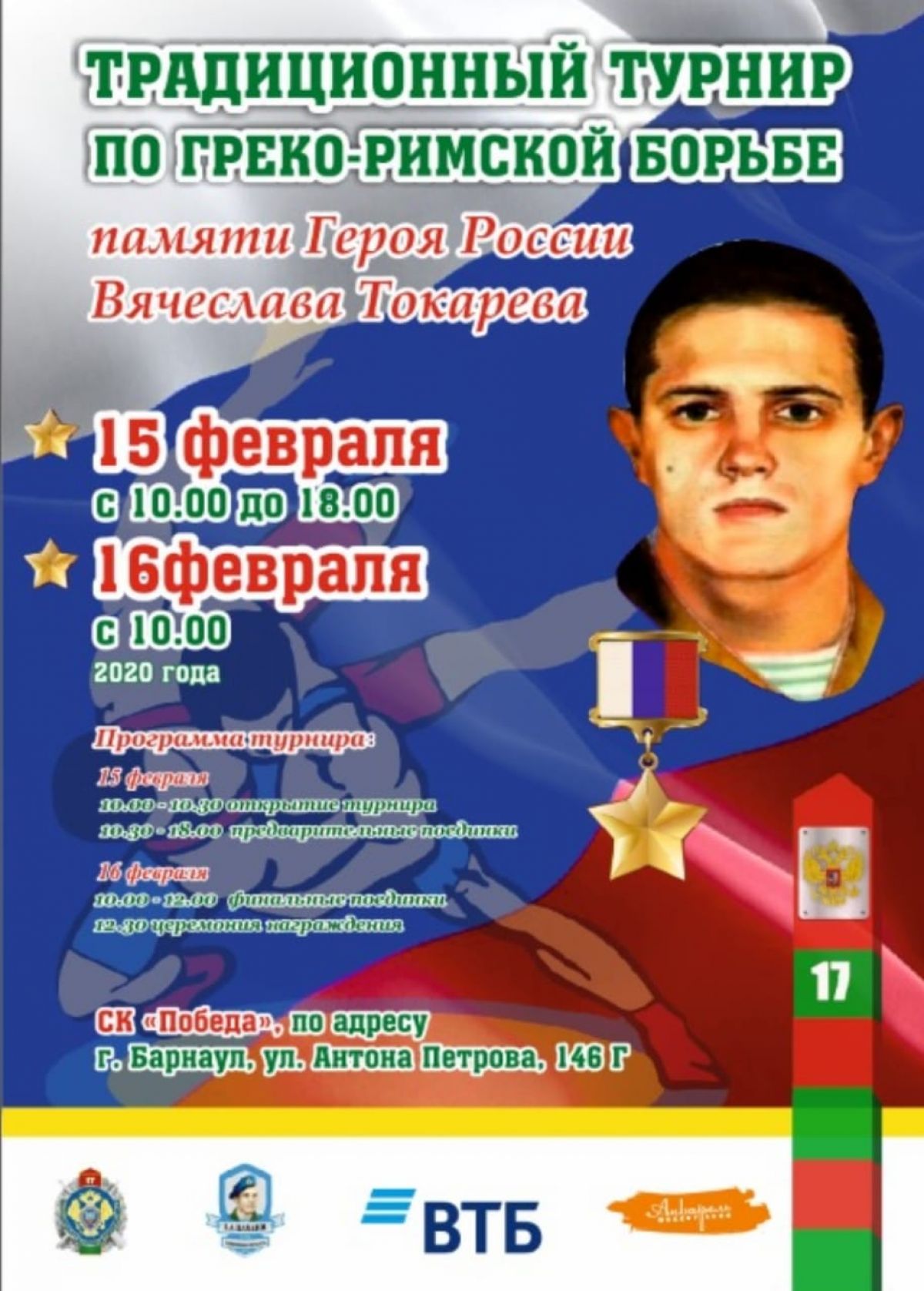 15−16 февраля. Барнаул. С/к «Победа». XIII соревнования по спортивной борьбе памяти Героя России Вячеслава Токарева