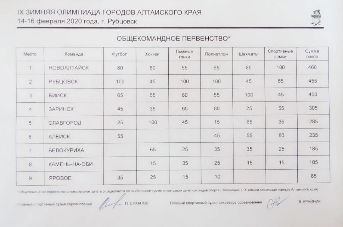 Сборная Новоалтайска всего на 5 очков обошла команду хозяев олимпиады в таблице общекомандного зачёта. Третье место заняли бийчане.