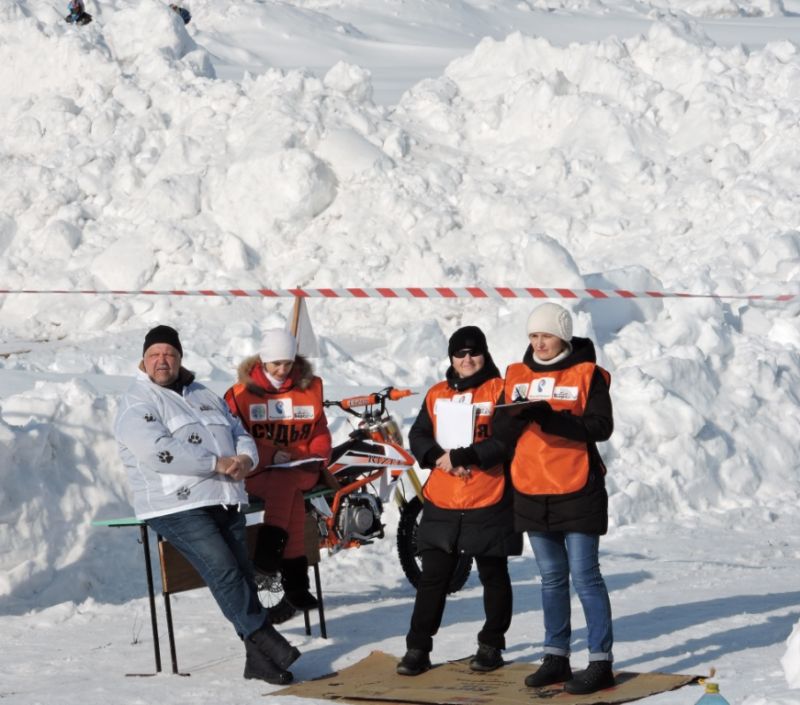 Четко отработала судейская бригада во главе с организатором гонок Андреем Мельниковым. Заезды сменялись один за другим. Всего их было восемь, по 15 минут каждый. Это было тяжелое испытание для техники и гонщиков. От больших оборотов перегревались моторы. Лыжники очень скоро с ног до головы покрылись грязью, летящей из-под колес мотоциклов.