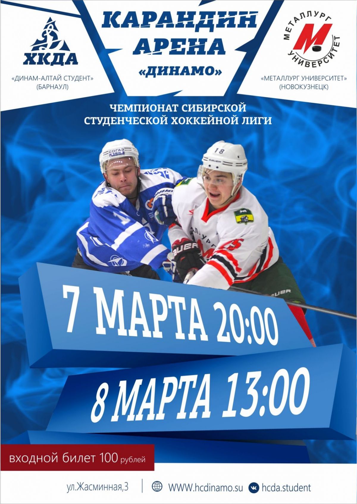 7−8 марта. Барнаул. «Карандин-Арена». Чемпионат ССХЛ. «Динамо-Алтай студент» - «Металлург-Университет» (Новокузнецк)
