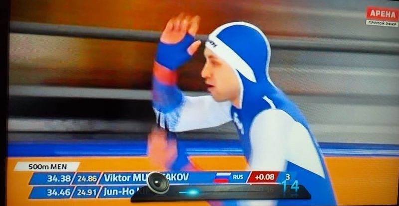 Мужчины. 500 м. 1. Тацуя Синама (Япония) - 34,067. 2. Лоран Дюбри (Канада) - 34,304. 3. Ямато Мацуи (Япония) - 34,365. 4. Виктор Муштаков - 34,386… 12. Руслан Мурашов (оба - Россия) - 34,785.