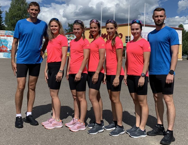 Слева-направо: тренер Гельманов Артемий, Чумакова Елена (Свердловская область), Кононова Александра (Москва/Приморский край), Степанова Вероника (Камчатский край), Крупицкая Евгения (Санкт-Петербург), Непряева Дарья (Тверская область), тренер Немтинов Егор. На фото нет Ольги Жолудевой (Республика Карелия).