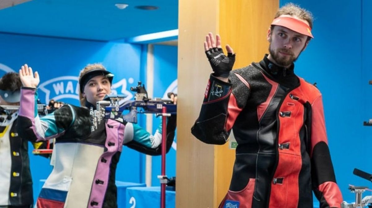 В одном из вчерашних финалов в олимпийском упражнении - стрельбе из пневматической винтовки на дистанции 10 метров в смешанных командах - победу одержала сборная Удмуртской Республики в составе заслуженного мастера спорта Юлии Каримовой и мастера спорта международного класса Андрея Конькова. В упорной борьбе в медальном матче за победу они опередили мастеров спорта международного класса Юлию Зыкову из Красноярского края и Андрея Головкова из Москвы.
