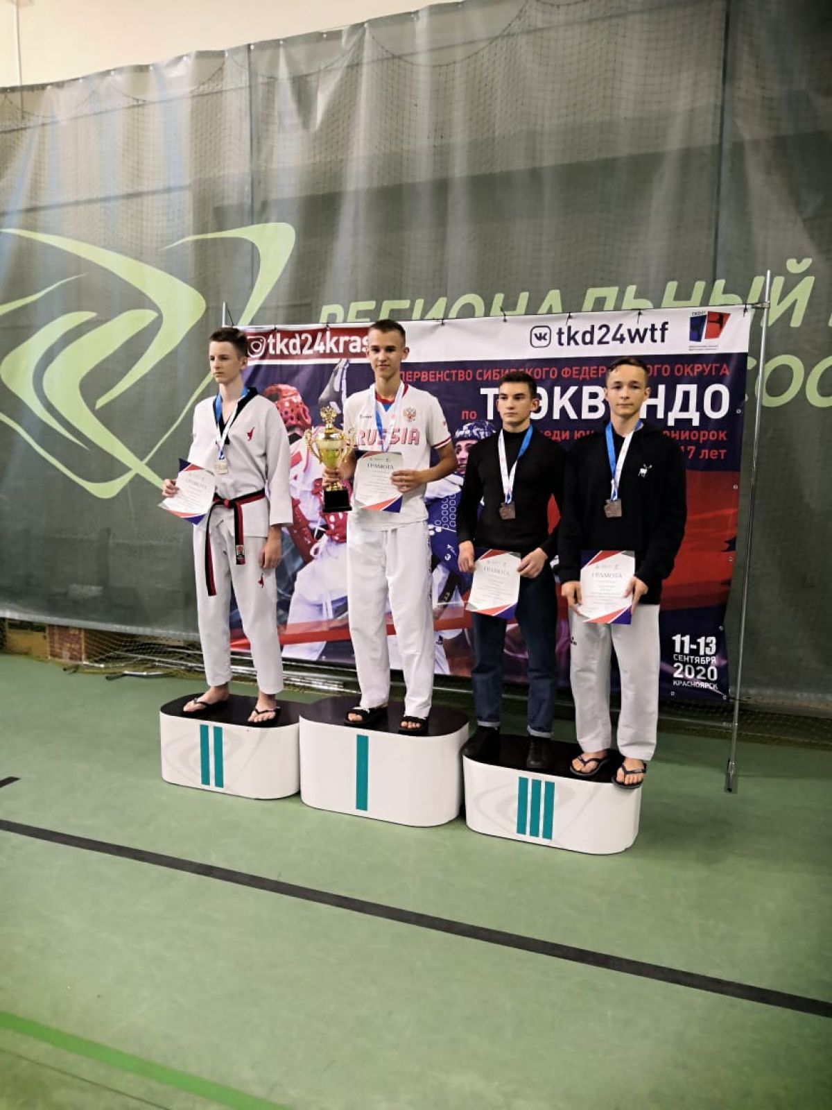 Соревнования среди юниоров 15−17 лет проходили 12−13 сентября в Красноярске. Победителями Сибирского федерального округа стали трое алтайских тхэквондистов - Никита Кожевников (весовая категория 63 кг), Руслан Лушков (55 кг) и Карина Гайтова (42 кг). Никита Кожевников занимается в спортшколе олимпийского резерва «Олимпийские надежды», а Руслан и Карина - в Краевой СШОР. Но тренирует их один тренер - Пётр Маркин.