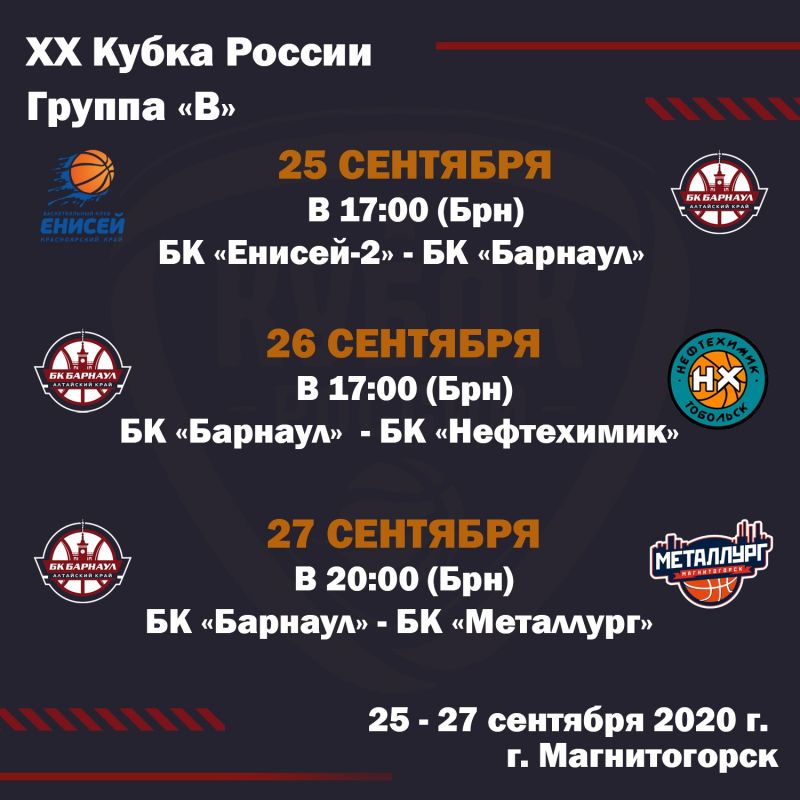 Как сообщили в группе болельщиков алтайского клуба во «ВКонтакте», первую игру БК «Барнаул», проведет завтра, 25 сентября, против «Енисея-2», начало в 17−00 (время - барнаульское). 26 сентября наши баскетболисты в это же время сыграют против тобольского «Нефтехимика», 27 сентября - против магнитогорского «Металлурга» (начало в 20−00).