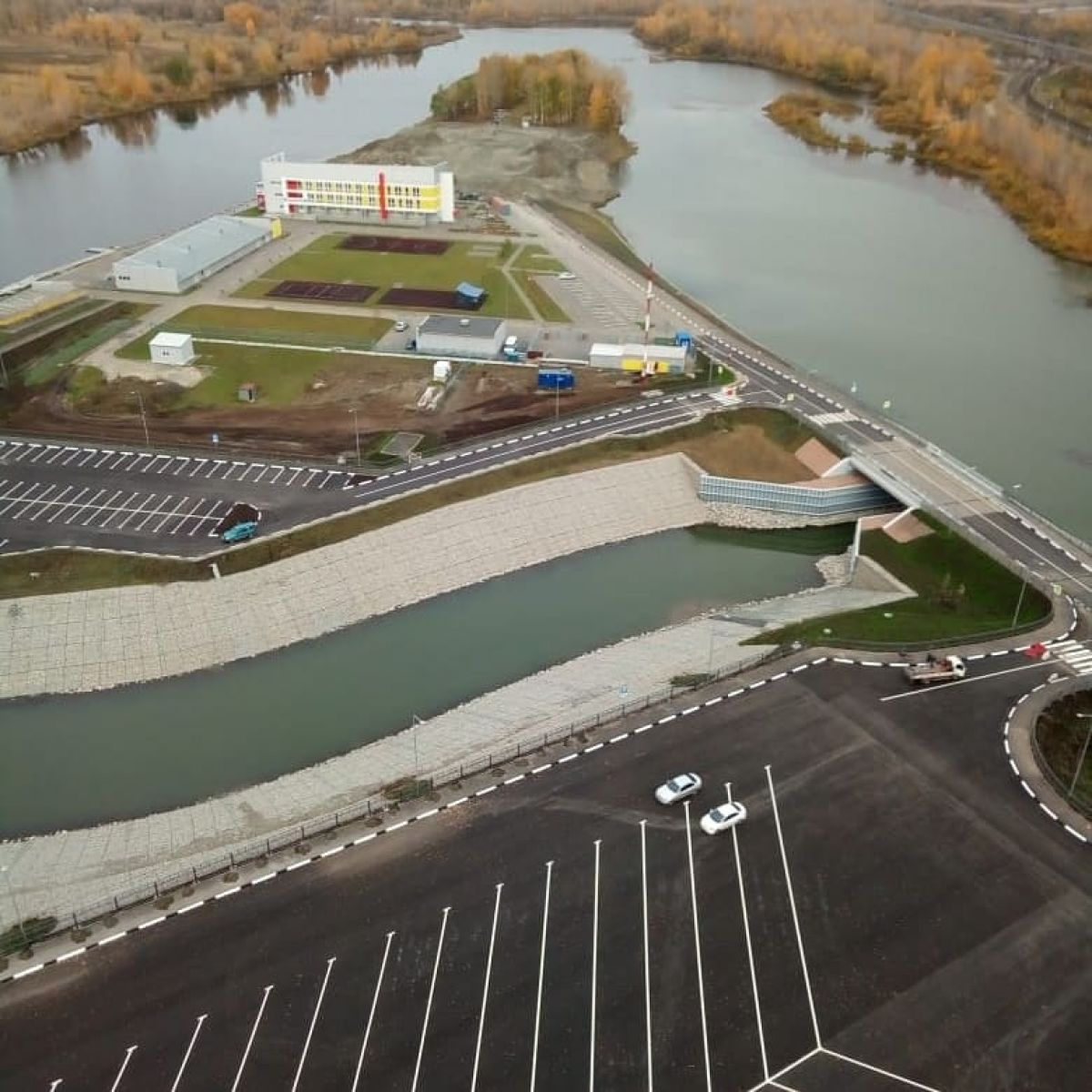 Работы на гребном канале начались больше года назад. Напомним, что первый этап строительства включал в себя возведение 12-метрового моста через водоем, гидромеханизированные работы по формированию и укреплению дна и откосов обводного канала, намыв грунта, а также возведение земляного полотна на парковочных площадках.