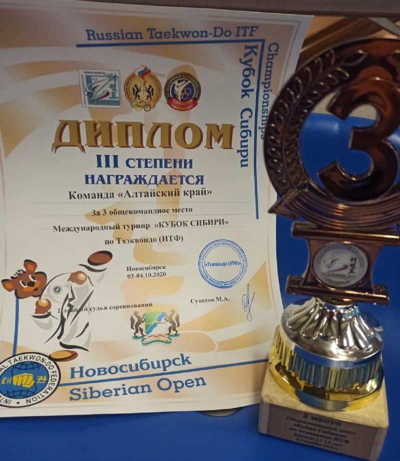 Открытые соревнования «Чемпионат и Первенство Сибирского федерального округа по тхэквондо ИТФ «Кубок Сибири» состоялись 2−4 октября в Новосибирске. В них участвовали не только сибирские спортсмены, но и представители Республики Коми, Республики Бурятия, Свердловской области и Ямало-Ненецкого автономного округа. Сибирский федеральный округ был представлен 12 городами Томской, Омской, Новосибирской областей, Красноярского и Алтайского краев. Ожидался ещё приезд спортсменов из Казахстана, на грамотах даже обозначили международный статус турнира, но из-за сложной эпидемиологической обстановки их визит сорвался.
