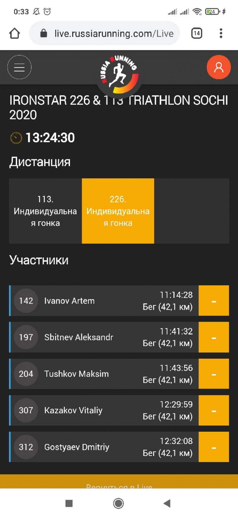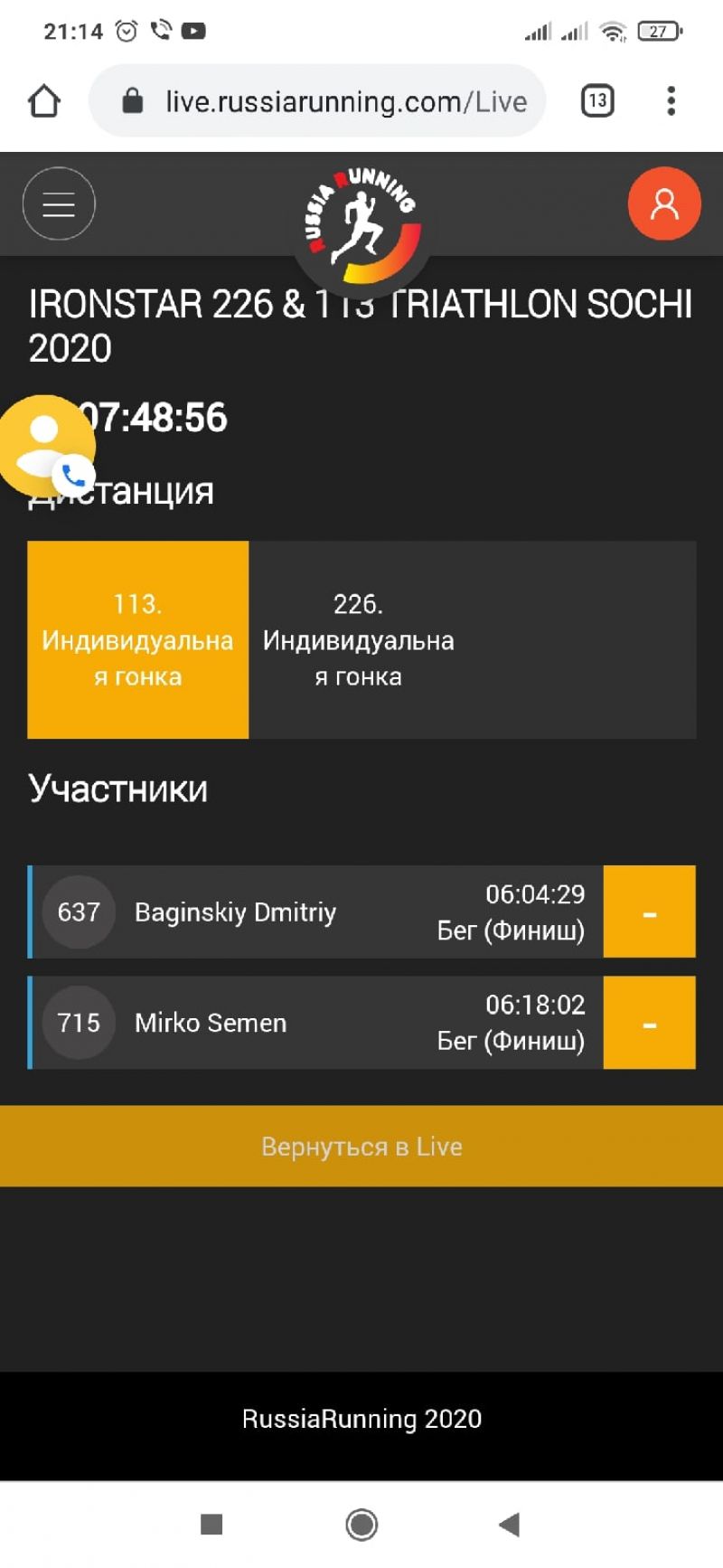 Там же в Сочи параллельно проходил старт на полужелезной дистанции, где финишировали Семён Мирко и Дмитрий Багинский.