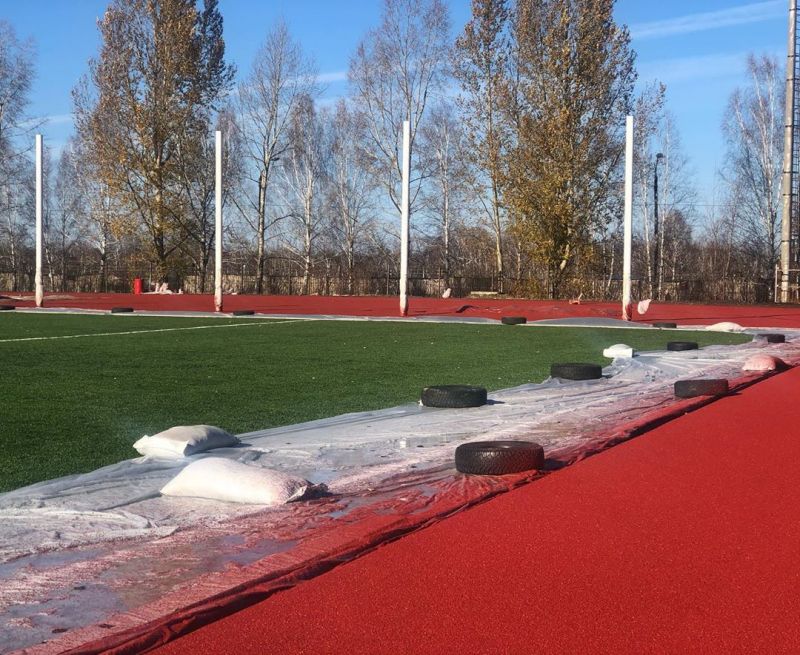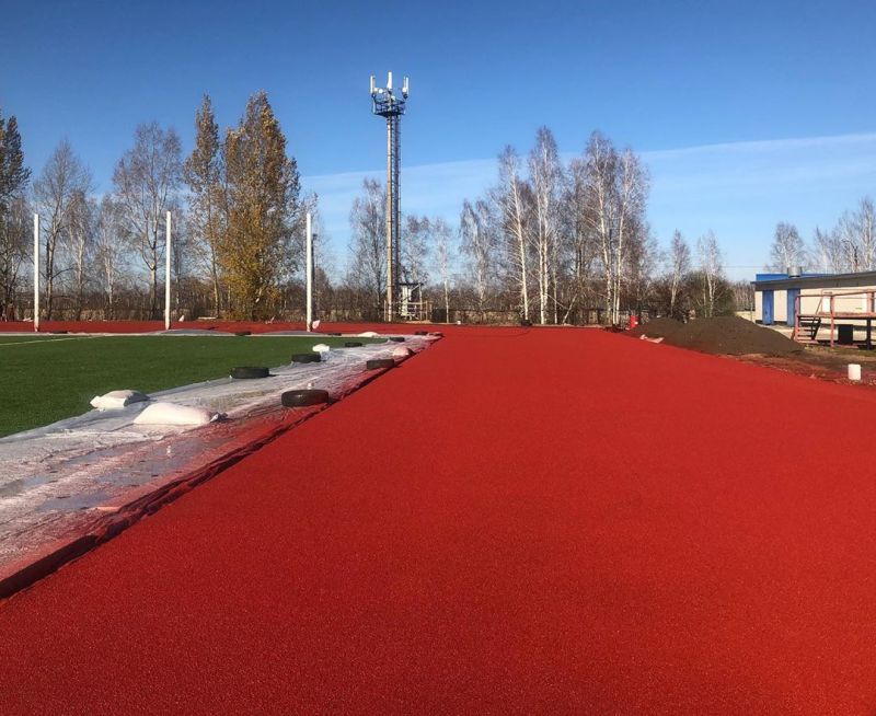 На данный момент строители уложили второй слой красной резиновой крошки на беговые дорожки, а буквально сегодня нанесли разметку, сообщает газета «Новое время».