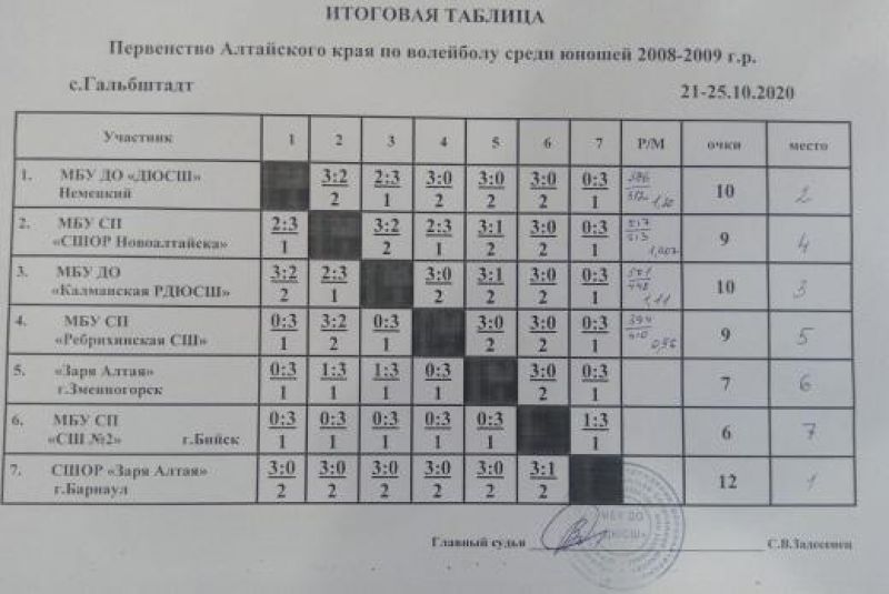 С 21 по 25 октября в административном центре Немецкого национального района селе Гальбштадт проходили краевые соревнования по волейболу - первенство края среди мальчиков 2008—2009 годов рождения.