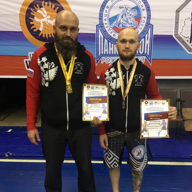 Особняком стоит успех барнаульца Дмитрия Золотова в весовой категории 100 кг в панкратионе традиционном. Для 44-летнего спортсмена это седьмой титул чемпиона России.