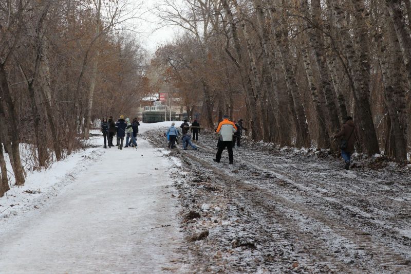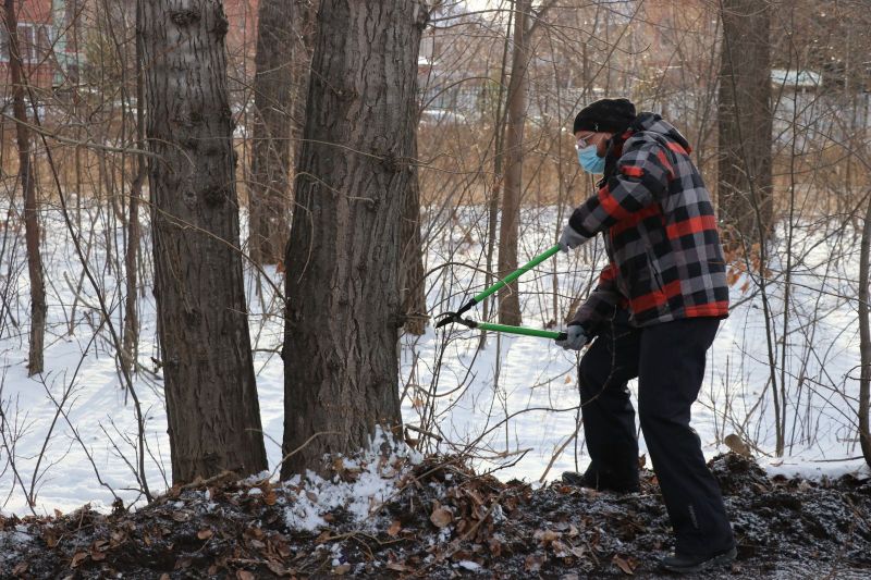 «Народная лыжня» стартовала с субботника. В парке Ленина началась подготовка лыжной трассы
