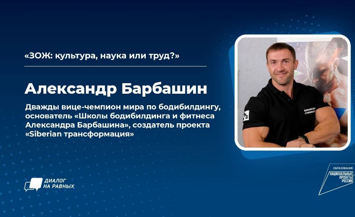 19 ноября в 15:00 (время барнаульское) в рамках проекта «Диалог на равных» состоится встреча с Александром Барбашиным, вице-чемпионом мира по бодибилдингу.