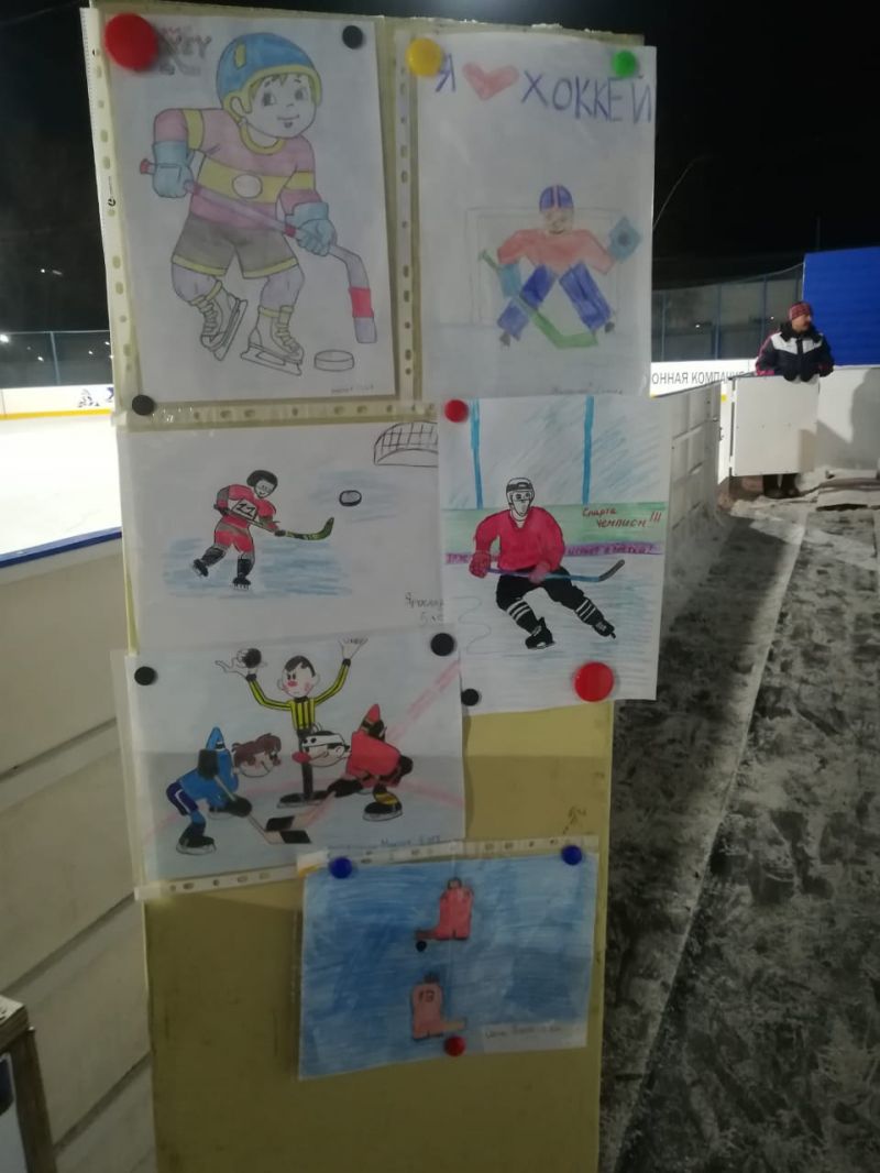 К Дню хоккея юные хоккеисты нарисовали рисунки, которые были размещены на стенде хоккейной коробки, всем воспитанникам были вручены памятные призы. Завершился спортивный праздник раздачей сладких призов.