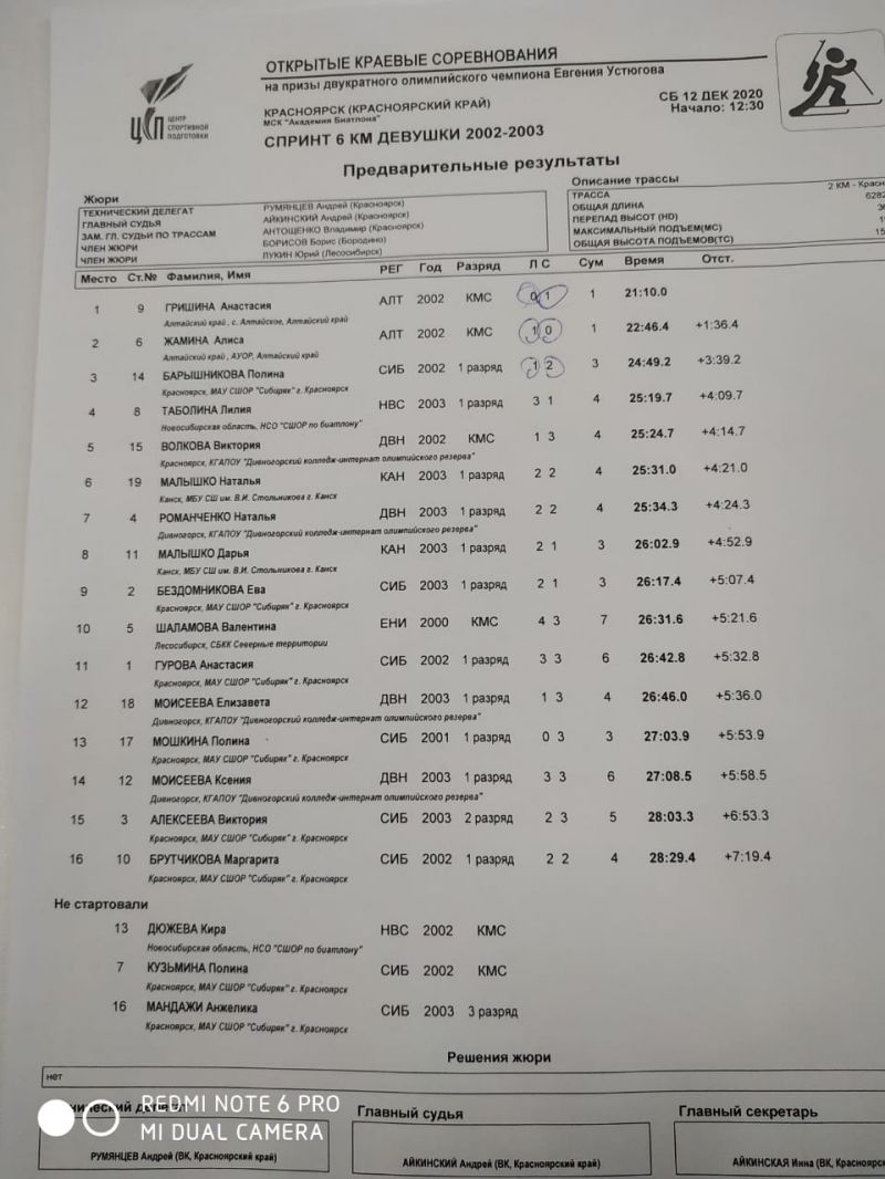 1. Анастасия Гришина (Алтайский край) - 21.10,0 (1)
