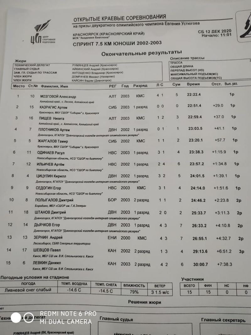 Спринт 7,5 км Юноши 2002−2003 год