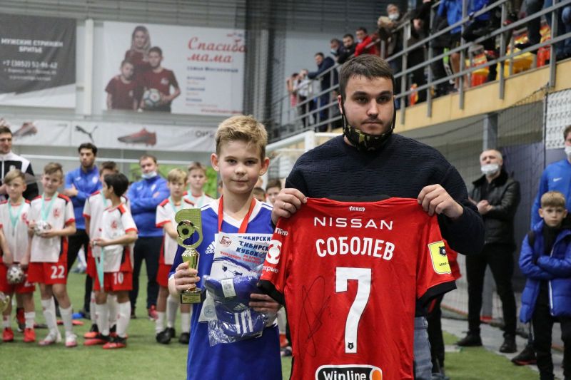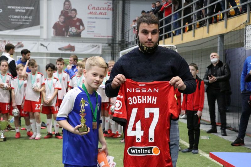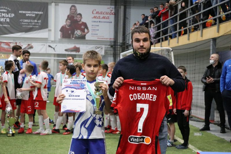 Конечно, Александр Соболев сам бы с удовольствием вручил призы победителям, призерам и лучшим игрокам турнира, но работа есть работа: московский «Спартак», за который выступает Саша, уже отправился на тренировочные сборы перед возобновлением сезона в РПЛ, так что приехать в Барнаул он никак не мог. Зато передал для юных футболистов не только пожелания хорошей игры, но и именные футболки игроков «Спартака»: Александра Максименко, Георгия Джикии, Романа Зобнина, Александра Кокорина и свои собственные.